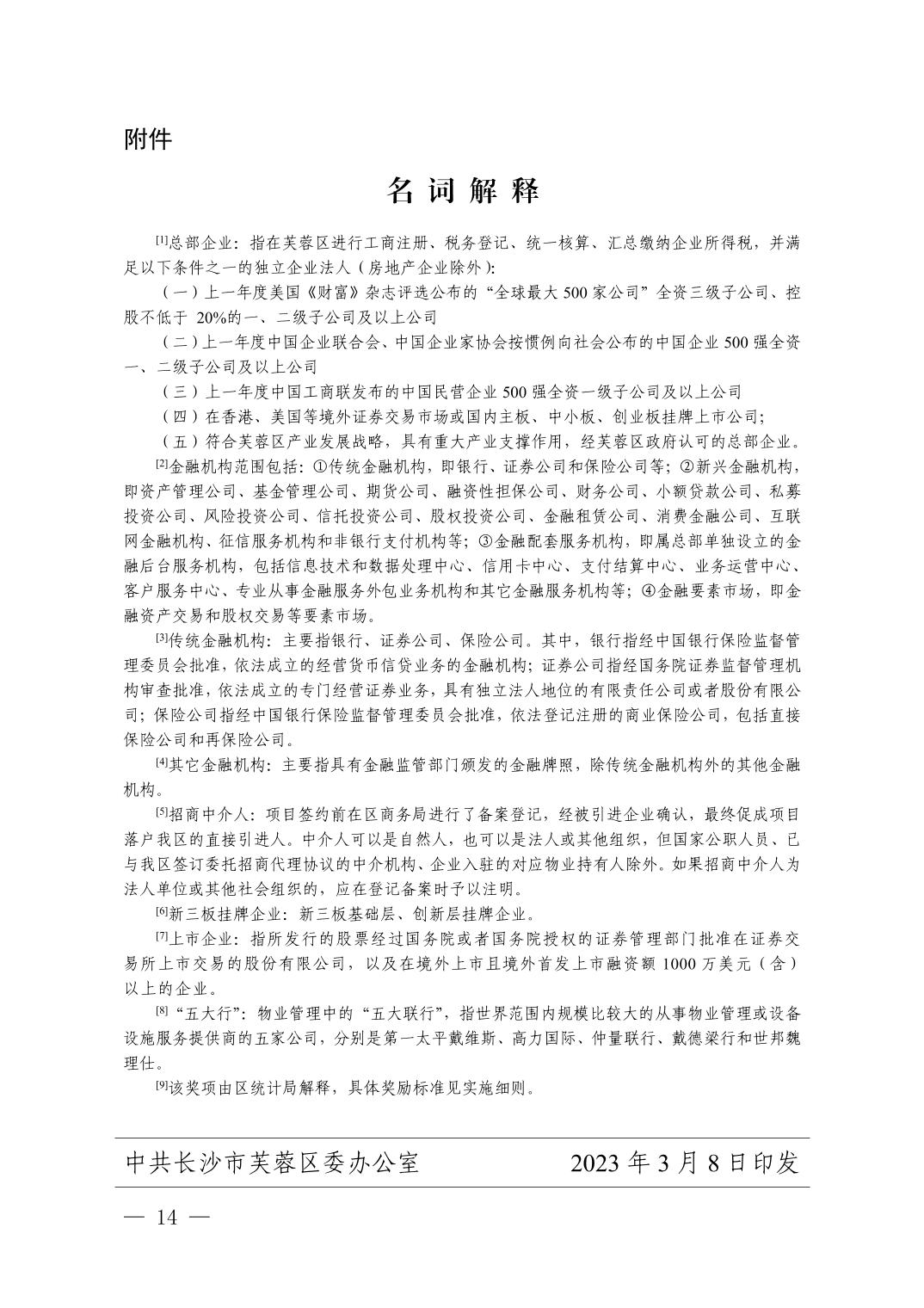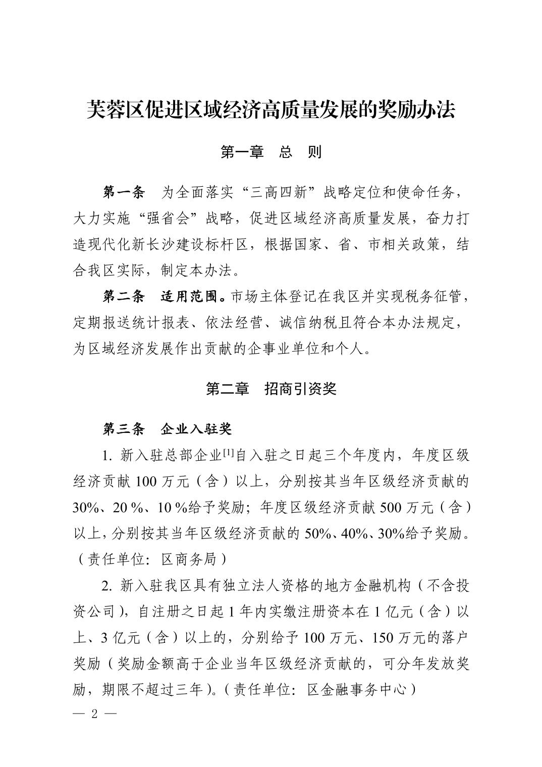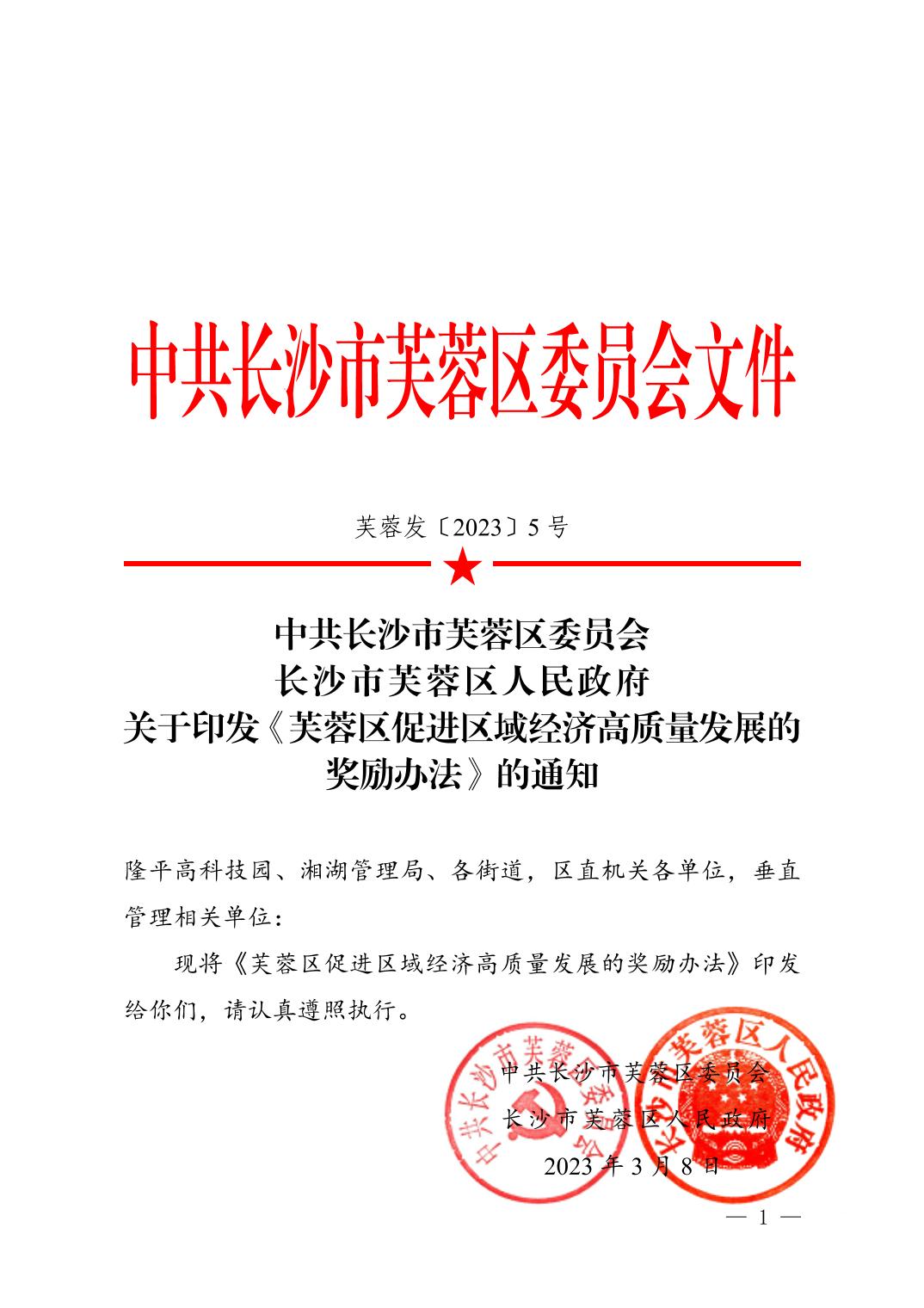 关于印发《芙蓉区促进区域经济高质量发展的奖励办法》的通知(芙蓉发〔2023〕5号)