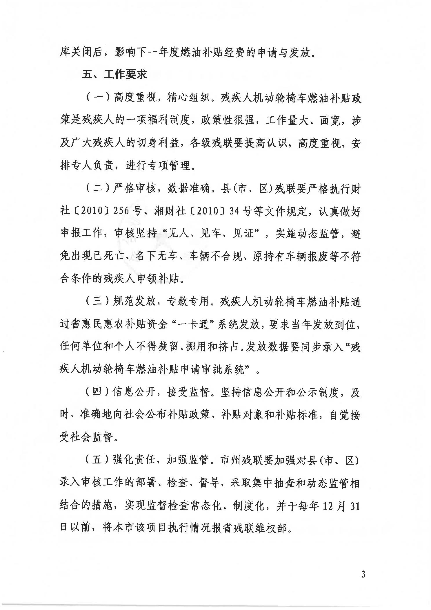 湖南省残疾人联合会关于进一步规范残疾人机动轮椅车燃油补贴工作的通知