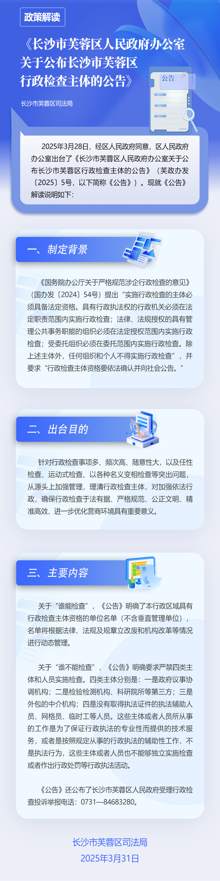 【图解】长沙市芙蓉区司法局关于《长沙市芙蓉区凯发一触即发办公室关于公布长沙市芙蓉区行政检查主体的公告》的政策解读