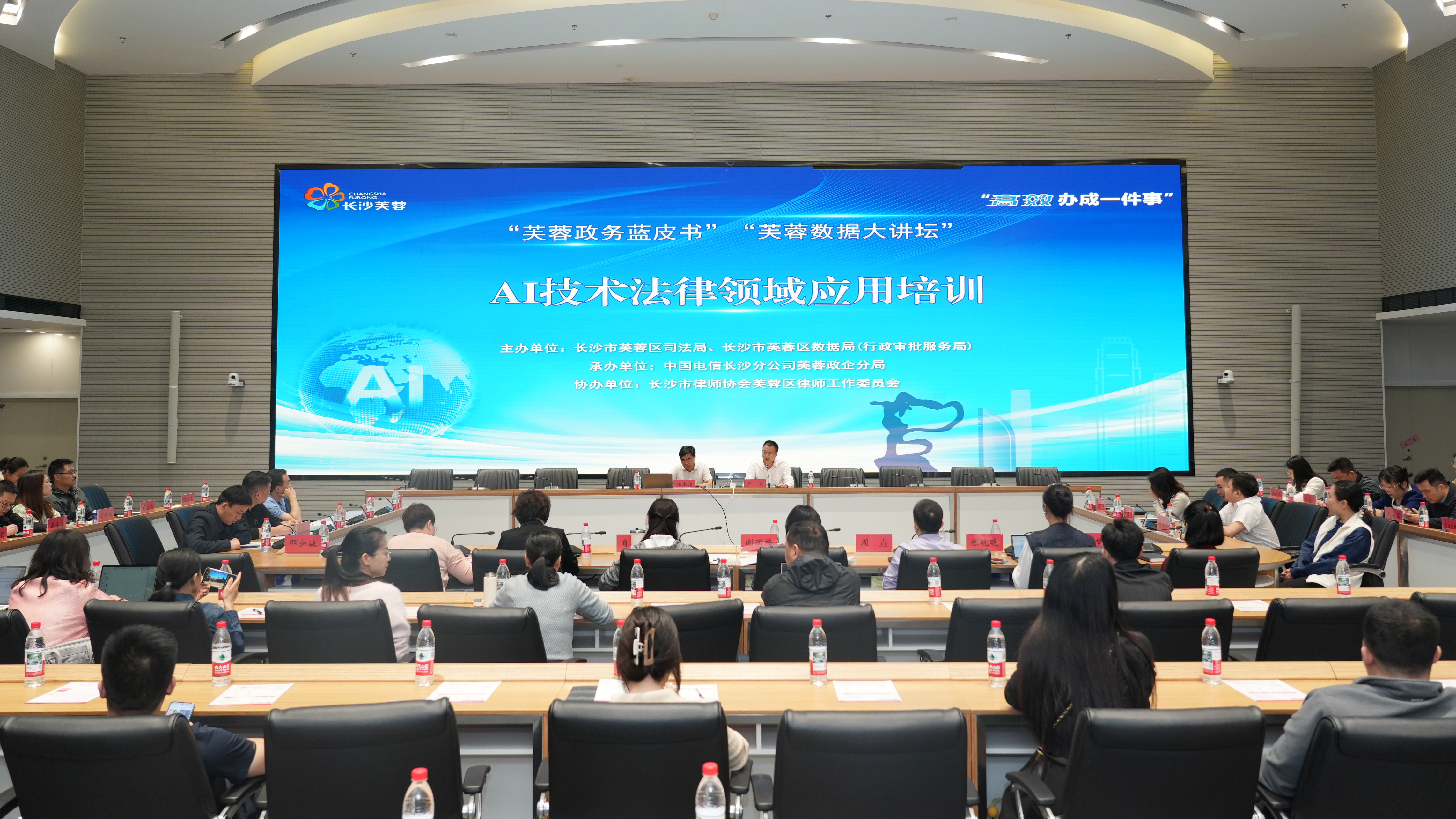 2025年4月24日上午,一场聚焦“AI+法律”前沿应用的科技盛宴在芙蓉区拉开帷幕。由长沙市芙蓉区司法局、区数据局(行政审批服务局)联合打造的“芙蓉政务蓝皮书”品牌系列活动——“芙蓉数据大讲坛”首期课程火热开讲。本次活动携手中国电信长沙分公司芙蓉政企公司、长沙市律师协会芙蓉区律师工作委员会,吸引了全区70余家律所负责人及各部门法治工作者逾百人踊跃参与。