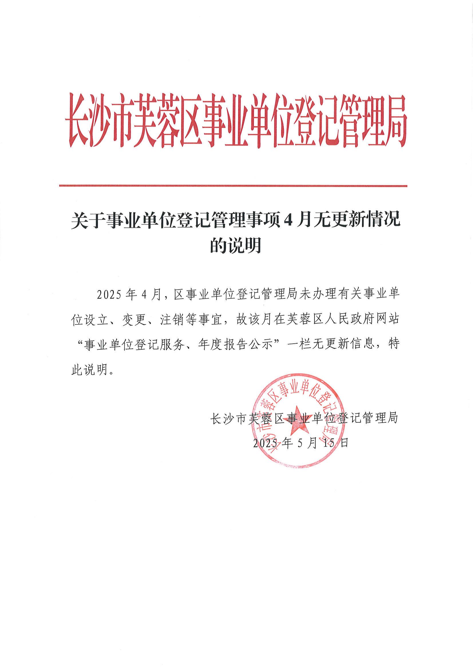 2025年4月事业单位登记管理事项公告